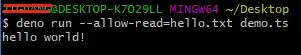 console.log(decoder.decode(data))同样在读取文件时我们也需要授权,我们可以使用 allow-read :